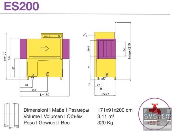Лінійка Evolution Line розроблена для великих ресторанів, де потрібна безперервна тривала робота посудомийних машин. Лінійка налічує 28 моделей тунельних посудомийних машин, розрахованих на використання квадратних кошиків розміром 50х50х13 см. Моделі ES55, ES60, ES65 та ES70 мають ширину 79 см.