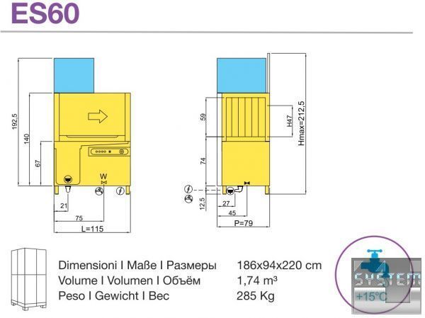 Лінійка Evolution Line розроблена для великих ресторанів, де потрібна безперервна тривала робота посудомийних машин. Лінійка налічує 28 моделей тунельних посудомийних машин, розрахованих на використання квадратних кошиків розміром 50х50х13 см. Моделі ES55, ES60, ES65 та ES70 мають ширину 79 см.