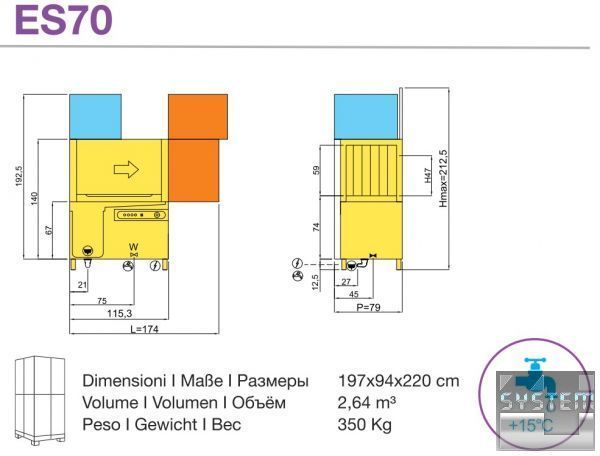 Лінійка Evolution Line розроблена для великих ресторанів, де потрібна безперервна тривала робота посудомийних машин. Лінійка налічує 28 моделей тунельних посудомийних машин, розрахованих на використання квадратних кошиків розміром 50х50х13 см. Моделі ES55, ES60, ES65 та ES70 мають ширину 79 см.