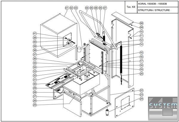 Корпус обладнання повністю виконаний з високоякісної нержавіючої сталі AISI 304 та розроблений так, що всі компоненти розташовані в передній частині машинки, щоб забезпечити просте техобслуговування з боку технічного спеціаліста.