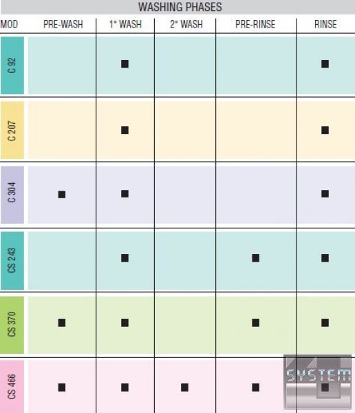 Предусмотрены один цикл предварительной мойки, один цикл мойки и один цикл ополаскивания.
