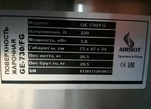 Інструкція поверхні для смаження AIRHOT GE-730FG