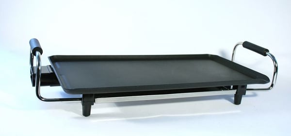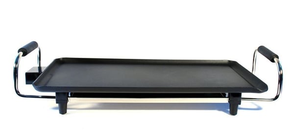 Плита гриль має плоску робочу поверхню, що обігрівається, яка нагрівається за рахунок вбудованих і рівномірно розподілених, в нижній частині обладнання, ТЕНів. Таке розташування електронагрівального елемента сприяє однорідності температури по всій поверхні сковорідки, завдяки чому відбувається правильне приготування страви та економія електроенергії. Також, це дозволяє готувати страви у власному соку, з красивою та рівномірною скоринкою.