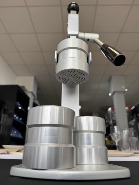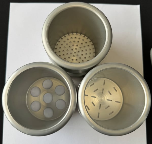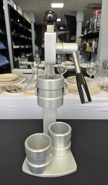 Робочі елементи, що безпосередньо контактують з продуктом (стакан та поршень), виконані з харчової нержавіючої сталі AISI 304.