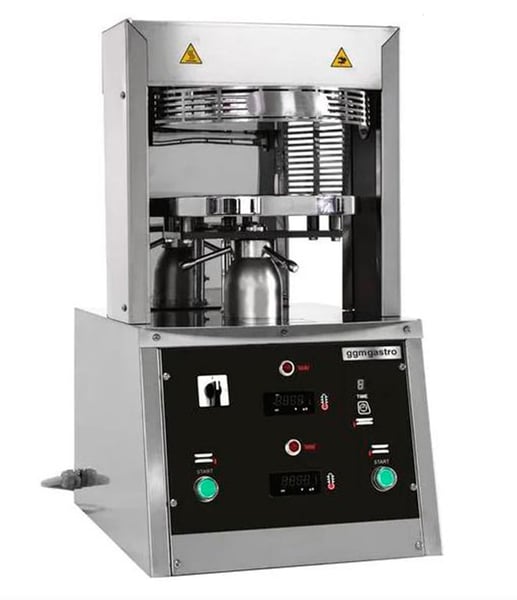 Прес для піци дозволяє формувати круглу основу із тіста для піци діаметром 33 см без кромки. Дві робочі сталеві поверхні, що нагріваються, виконані з нержавіючої сталі. Прес дає можливість змінювати товщину шару тіста для задоволення різних вимог.