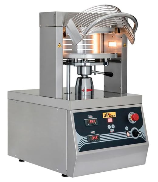 Прес для піци дозволяє формувати круглу основу із тіста для піци діаметром 33 см без кромки. Дві робочі сталеві поверхні, що нагріваються, виконані з нержавіючої сталі. Прес дає можливість змінювати товщину шару тіста для задоволення різних вимог.