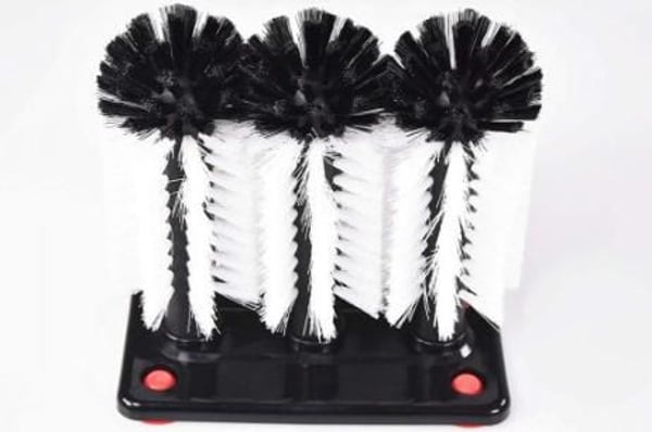 Єрш для миття склянки виконаний із поліпропілену, має 3 щітки з полівінілхлориду (ПВХ).