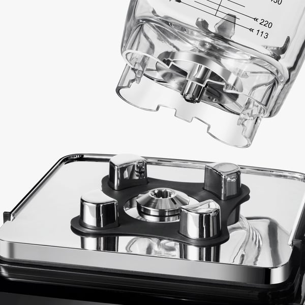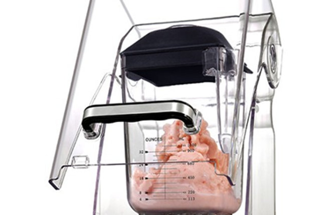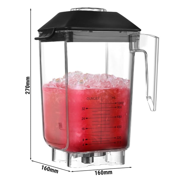 Блендер оснащено ковпаком з полікарбонату, що сприяє придушенню шуму та працює тільки при повністю закритій кришці.