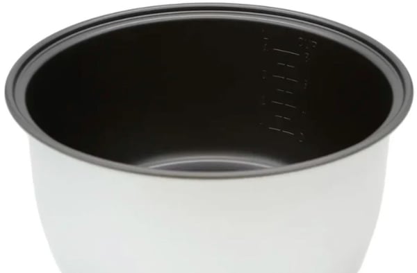Корпус рисоварки виготовлений зі стійкої до окиснення високоякісної нержавіючої сталі, а чаша з алюмінію з антипригарним покриттям. Кришка з пластику.