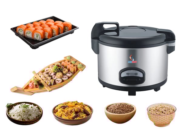 Електрична рисоварка - це відмінне рішення для приготування рису в суші-барах, ресторанах японської та китайської кухні, незамінна в закладах, де потрібно готувати велику кількість рису.
