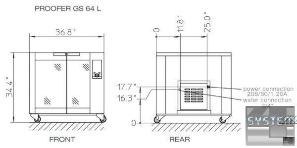 Технічні характеристики шаф для розстоювання WIESHEU GS 64 L: