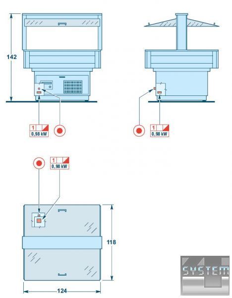 Комплектуется 6 контейнерами 1/1 GN и 3 направляющими 96,7 см для дальнейшей комплектации полками.