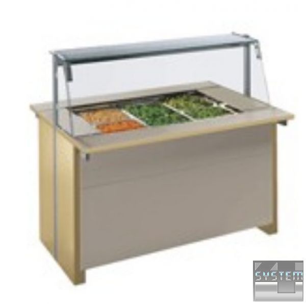 Горизонтальный салат бар, закрытая со стороны посетителя, обслуживаемая персоналом версия.