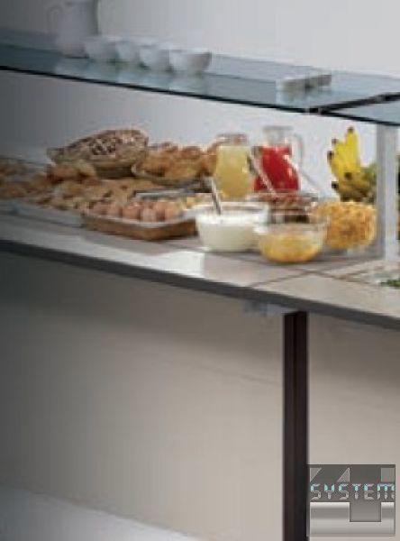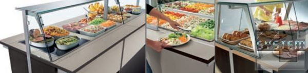 Горизонтальный салат бар, закрытая со стороны посетителя, обслуживаемая персоналом версия.