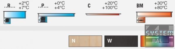 Линейка Beach Line представлена 28 открытыми островными (серия CLN), 28 закрытыми со стороны посетителя (серия CLR), 12 закрытыми островными (серия CLP) и 12 закрытыми пристенными (серия CLA) моделями. Прилавки отделываются под светлое дерево (...N - натуральный цвет) и венге (...W - wenge).