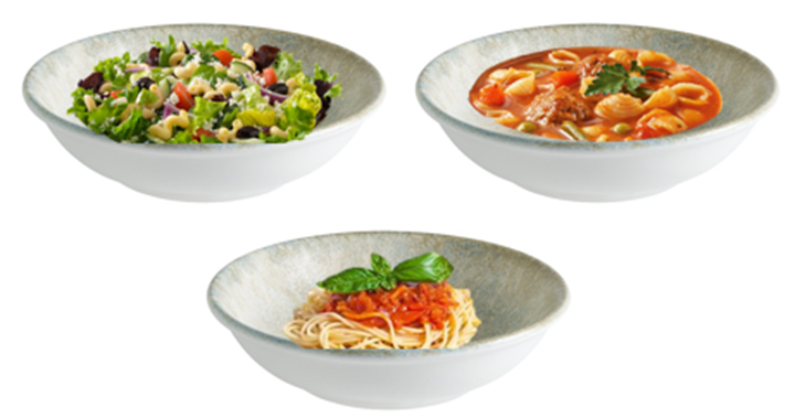 Тарілки та салатники мають зміцнений борт, який витримує високі механічні навантаження, завдяки чому вироби майже не схильні до сколів.