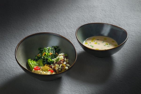 Тарілки та салатники мають зміцнений борт, який витримує високі механічні навантаження, завдяки чому вироби майже не схильні до сколів.
