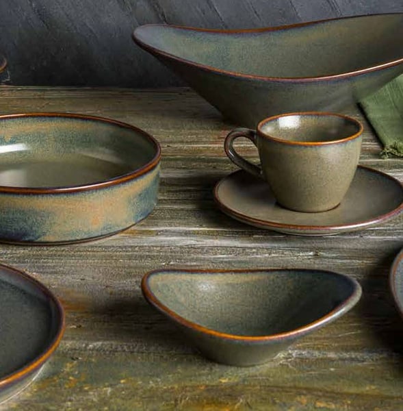 Колекція Bonna Gloire – це колекція професійного порцелянового посуду, розписана вручну та доступна в оригінальному дизайні, який неодмінно привертатиме увагу при подачі. Колекція Bonna Gloire представлена в темній гамі з нотками морського, пісочного, шоколадного та синього кольорів, з напиленням, коричневим кантом, блискучою матовою поверхнею.
