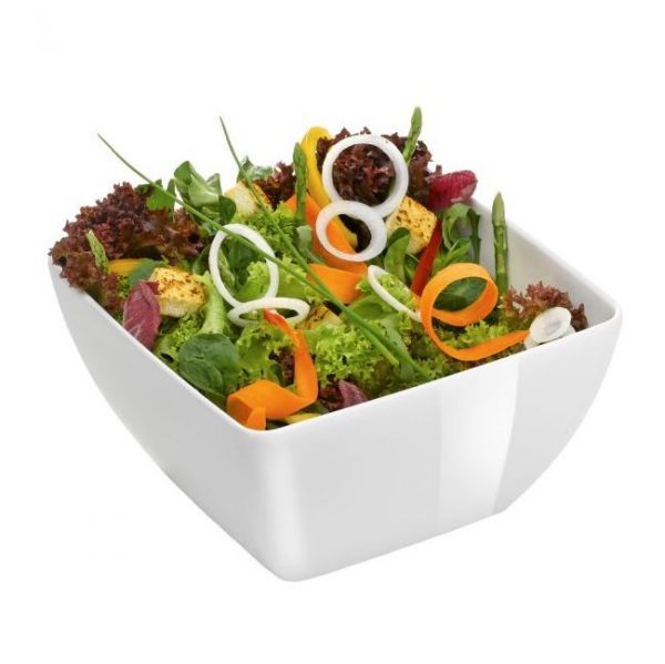 Салатник квадратної форми виконаний із меламіну. Білого кольору.