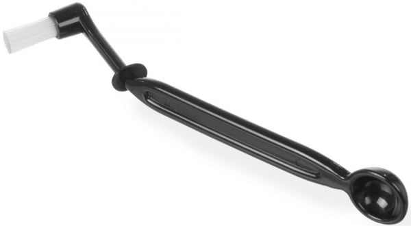 Прилад для чищення з одного боку містить щітку, а з протилежної - мірну ложку.