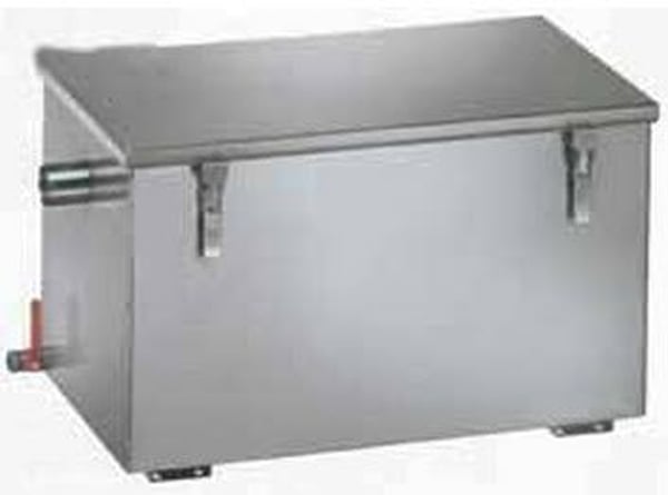 Об'єм шламу становить 16 літрів . Місткість для жиру 44 літрів . Кришка з відкидними замками та приєднувальними штуцерами DN50 . Включаючи штуцери з кулястим краном для спустошення корпусу.
