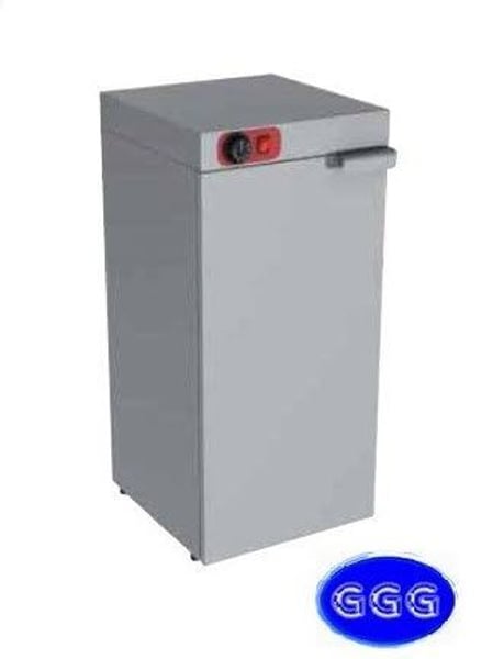 Підігрівач для посуду від німецького виробника GGG є якісним, перевіреним та надійним обладнанням. Корпус його виконаний із нержавіючої сталі. Розрахований на 60 тарілок діаметром 350 мм, і має одні двері. Полиці усередині регуруються. Термостат підтримує температуру в межах +30...+90 °С