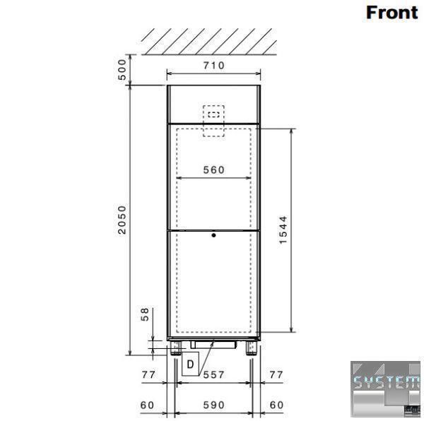 Холодильна шафа ECOSTORE Premium 727250 дводверна 2½, об'ємом 670л., ізоляція товщиною 75мм., температурний режим роботи -2…+10°С, прихований випарник, великий цифровий дисплей, система Frost Watch Control (автоматичне керування відтайкою), цикл тур теплих продуктів), LED підсвічування камери, двері із замком та оптичним датчиком, клімат клас +43°С, в комплекті з 4 полицями GN 2/1 та напрямними, низький рівень енергоспоживання (Class 7), холодоагент R134а, фронтальний вологозахист IPX5, виконання нерж. сталь AISI 304. Професійний холодильник має прямокутну конструкцію з габаритними розмірами: 710мм (довжина), 837мм (глибина), 2050мм (висота).