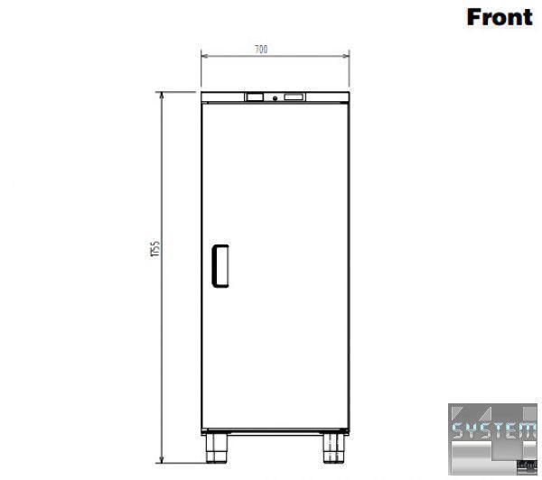 Професійний холодильник має габаритні розміри: 703мм (довжина), 620мм (глибина), 1755мм (висота).