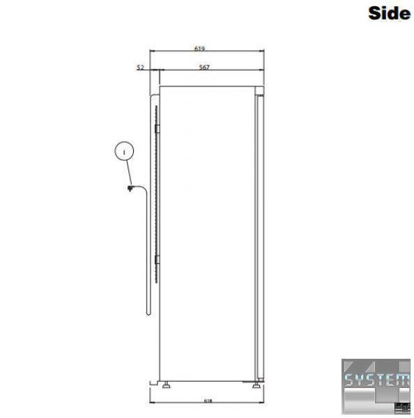 Професійний холодильник має габаритні розміри: 703мм (довжина), 620мм (глибина), 1645мм (висота).