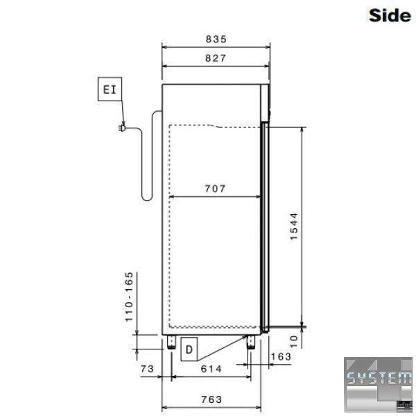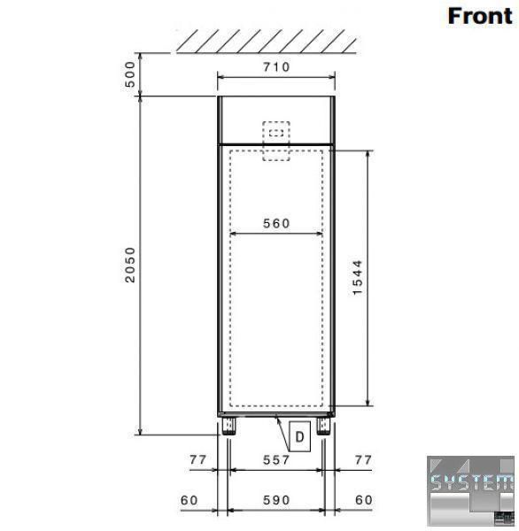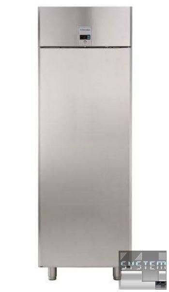 Холодильна шафа ECOSTORE 727335, однодверна, об'ємом 670л., ізоляція товщиною 75мм., температурний режим роботи -2…+10°С, прихований випарник, цифровий дисплей, автоматична відтайка, двері із замком та оптичним датчиком, клімат клас + у комплекті з 3 полицями GN 2/1 та напрямними, низький рівень енергоспоживання (Class 6), виконання нерж. сталь. Професійний холодильник має прямокутну конструкцію з габаритними розмірами: 710мм (довжина), 837мм (глибина), 2050мм (висота).