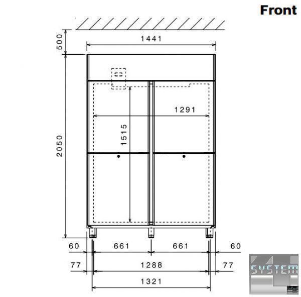 Морозильна шафа ECOSTORE Premium 727267 чотиридверна 4½, об'ємом 1430л., ізоляція товщиною 75мм., температурний режим роботи -22…-15°С, прихований випарник, великий цифровий дисплей, система Frost Watch Control (автоматичне керування відтайкою) теплих продуктів), LED підсвічування камери, двері із замком та оптичним датчиком, клімат клас +43°С, в комплекті з 8 полицями GN 2/1 та напрямними, низький рівень енергоспоживання (Class 6), холодоагент R404a, виконання нерж. сталь AISI 304. Професійний холодильник має габаритні розміри: 1441мм (довжина), 837мм (глибина), 2050мм (висота).