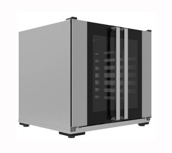 У даній шафі 5 рівнів (по 2 деки на кожному) під листи розміром 600х400 мм або GN 1/1, ручне керування апаратом, ручна подача пари, одинарні двері зі склом.