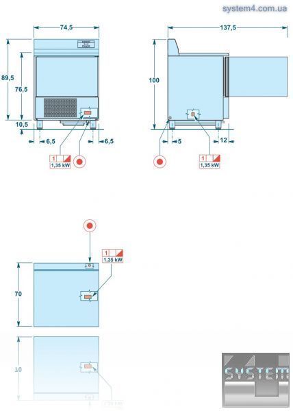Габаритні, (ДхШхВ) див: 74,5x70x100