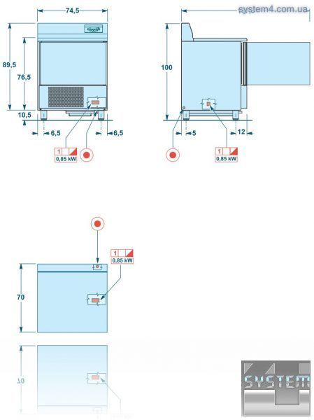 Габаритні, (ДхШхВ) див: 74,5x70x100