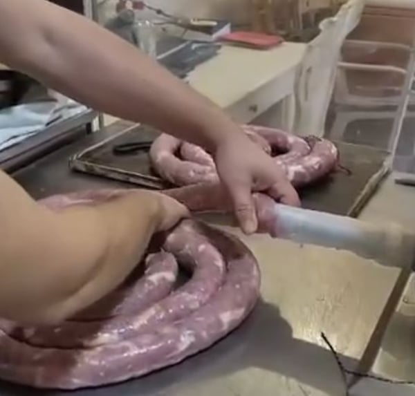 З його допомогою проводиться автоматичне набивання готової звиси в штучну або натуральну оболонку.