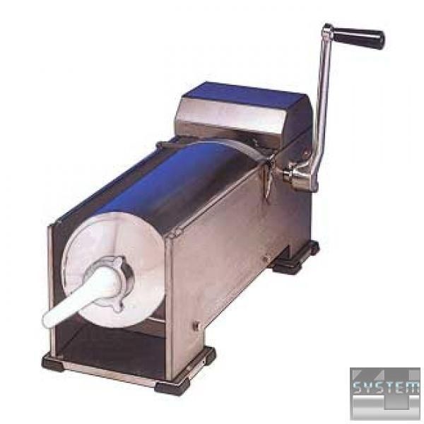 - Шляхом обертання рукоятки відбувається нагнітання фаршу в оболонку.