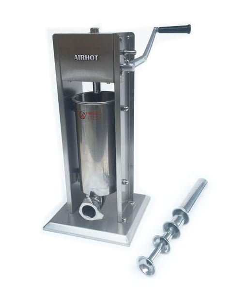 Вертикальний гастрономічний шприц AIRHOT SV-3 призначений для виробництва сирокопчених ковбас, сосисок, сардельок та шпикачок. Це незамінне обладнання для невеликих ресторанів, у ковбасних цехах, готелях, їдальнях, а також у домашніх умовах для любителів та професіоналів кулінарії у приготуванні унікальних ковбасних виробів, також у закладах громадського харчування, які пропонують своє виробництво. Завдяки вертикальній формі він значно економить простір на кухні. Також пристрій обладнано зворотним повітряним клапаном, що забезпечує підйом поршня без зусилля.
