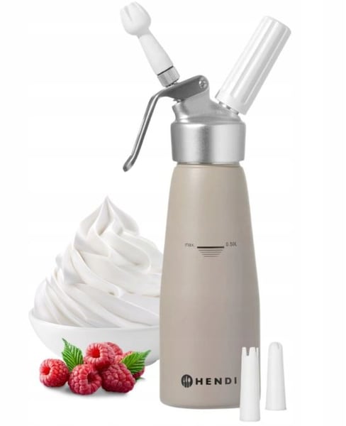 Сифон для збивання вершків HENDI 975893-1 відноситься до кондитерського інвентарю для ресторанів, кафе, барів та інших закладів громадського харчування. Дозволяє легко і швидко приготувати збиті вершки, креми, муси, також чудово послужить прикрасою для капучино, кави, шийок, морозива та кондитерських виробів.