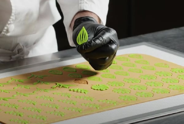 Універсальну силіконову форму GIARDINO від Silikomart використовують для створення елегантного декору з різноманитних візерунків мініатюрного мереживного листя, а також для декорування перших і других страв або створення оригінальних аперитивів. Можна декорувати готові страви з кремами, мусами, а також овочами, м'ясом і навіть рибою.
