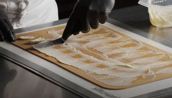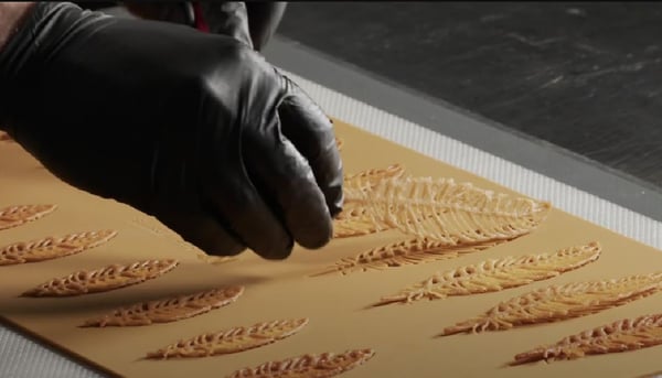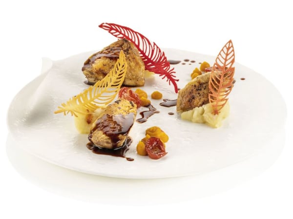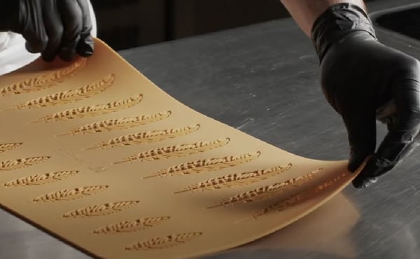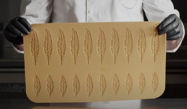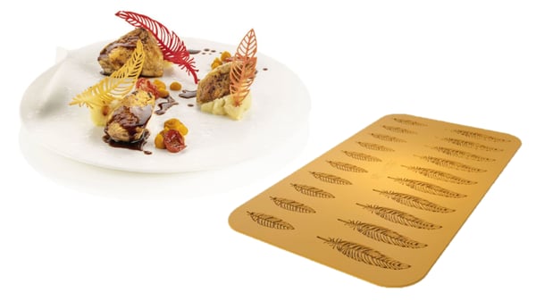 Універсальну силіконову форму PIUMA від Silikomart використовують для створення елегантного декору з візерунків мініатюрного мереживного пір'я, а також для декорування перших і других страв або створення оригінальних аперитивів. Можна декорувати готові страви з кремами, мусами, а також овочами, м'ясом і навіть рибою.