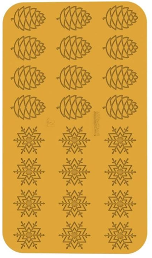 Універсальну силіконову форму INVERNO від Silikomart використовують для створення елегантного декору з візерунків мініатюрних мереживних соснових шишок та сніжинок, а також для декорування перших і других страв, створення оригінальних аперитивів. Форму Inverno також можна застосовувати в кондитерському виробництві для прикрашання порційних десертів і тортів.