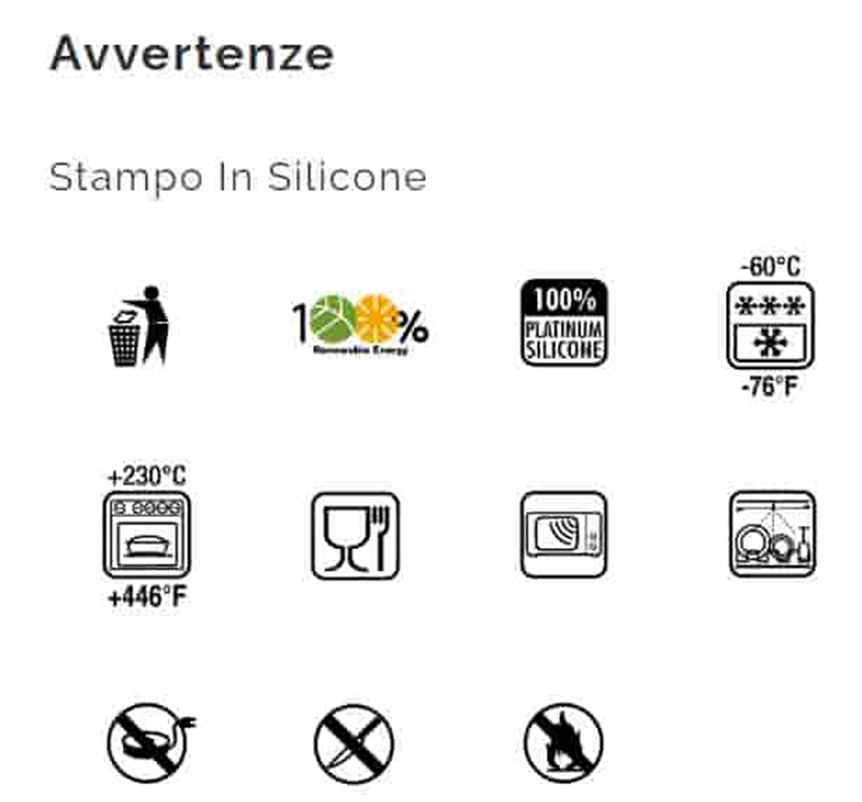 Silikomart використовує чистий силікон, який є безпечним, хімічно інертним і відповідає найсуворішим стандартам харчової безпеки.