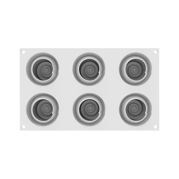 Силіконова форма GIVRE 90 Silikomart дає змогу створювати оригінальні вишукані однопорційні десерти, а об'єми кожної лунки дають змогу отримати їх одразу 6 штук. Ця форма ідеально підходить для створення оригінальних кондитерських виробів: елегантних мусів і парфе, надаючи кондитерам можливість реалізувати найсміливіші творчі задуми. Десерт з форми GIVRE 90 Silikomart можна використовувати як комбінацію з порціями GIVRE 30. Розроблено спільно з Майклом Барточетті.