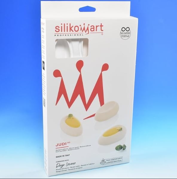 Форма JUDI від Silikomart з точністю повторює контури десерту. Форма відрізняється високою гнучкістю та зберігає свою початкову форму навіть у складеному стані, не залишаючи білих згинів на місцях складок.