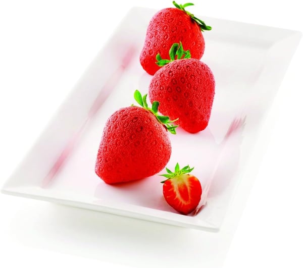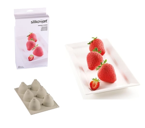 Унікальну силіконову форму "Fragole e Panna" від Silikomart використовують для створення елегантних десертів та декору з мініатюрних полуниць, які нададуть вашому столу чи вітрині солодкого та спокусливого смаку. Порожнини форми мають революційний внутрішній край, який надає основі десерту округлої форми. "Fragole e Panna" забезпечує ідеальний результат у приготуванні семіфредо, у приготуванні звичайних і мусових десертів тощо.