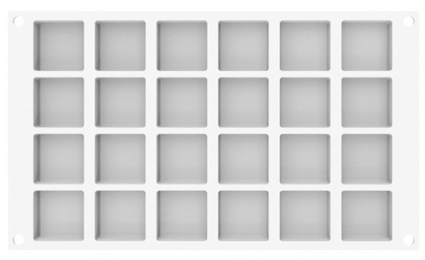 Силіконова форма QUADRATO XS від Silikomart дає змогу створювати оригінальні вишукані однопорційні десерти, а об'єми кожної лунки дають змогу отримати їх одразу 24 позиції. Ця форма ідеально підходить для створення цукерок, елегантних мусів і мінідесертів, семіфреддо, які додадуть ефектності та шарму вашій десертній вітрині. Форма QUADRATO XS Silikomart забезпечує простий та інноваційний спосіб створення унікальних десертів, які обов'язково привертатимуть увагу.