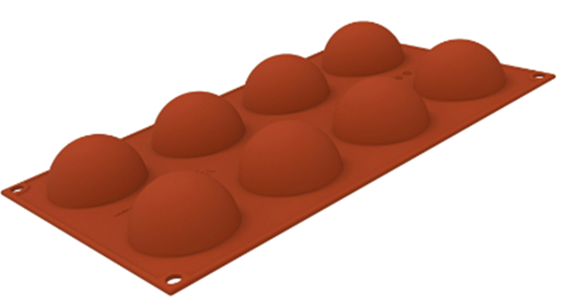Колекція силіконових форм SF555 SEMISFERA ідеально підходить для створення витончених десертів чіткої напівсферичної форми. Завдяки компактній формі порції, гарантовано високу якість та високу продуктивність приготування кожної порції десертів (панкейків, тістечок, моті, мусів, желе, заморожених ласощів тощо). Форма ідеально підходить для створення однопорційних десертів, що надасть оригінальності та витонченості вашим однопорційним вітринам.