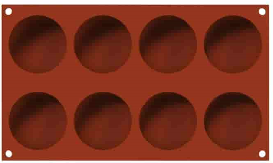 Силіконова форма SEMISFERA Silikomart SF565 дає змогу створювати оригінальні вишукані однопорційні десерти, а об'єми кожної лунки дають змогу отримати їх одразу 8 штук. Ця форма ідеально підходить для створення оригінальних кондитерських виробів: елегантних мусів і парфе, надаючи кондитерам можливість реалізувати найсміливіші творчі задуми.