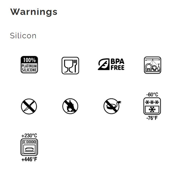Silikomart використовує чистий силікон, який є безпечним, хімічно інертним і відповідає найсуворішим стандартам харчової безпеки.