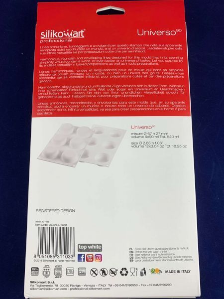 Прес-форма UNIVERSO 90 – це результат співпраці відомого кондитера ANDREY RUDKOV та дизайнерів Silikomart Professional. Сьогодні він проводить курси та майстер-класи по всьому світу, і він працює як консультант для кількох компаній.